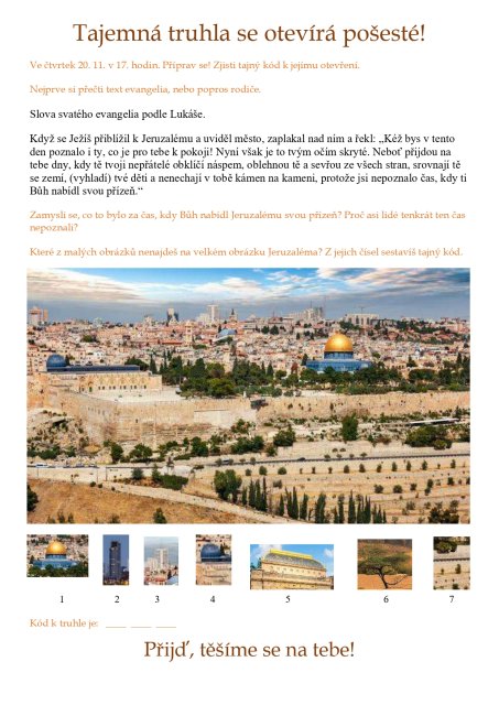 3. třída - příprava k 1. sv. přijímání - pondělí 16.15 - M. Šittová 776 707 268