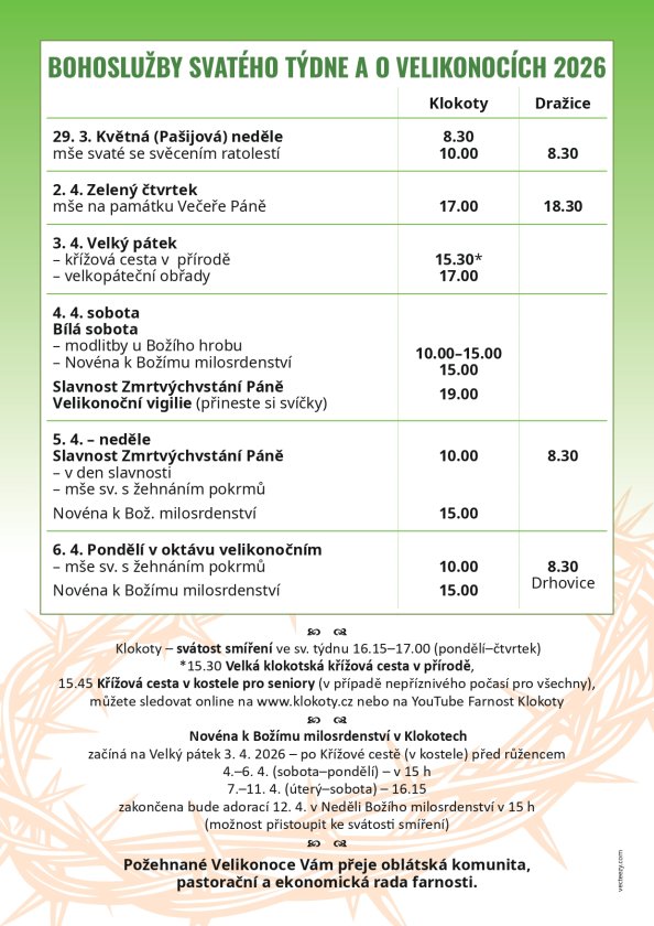 Bohoslužby Svatého týdne a Velikonoce 2026